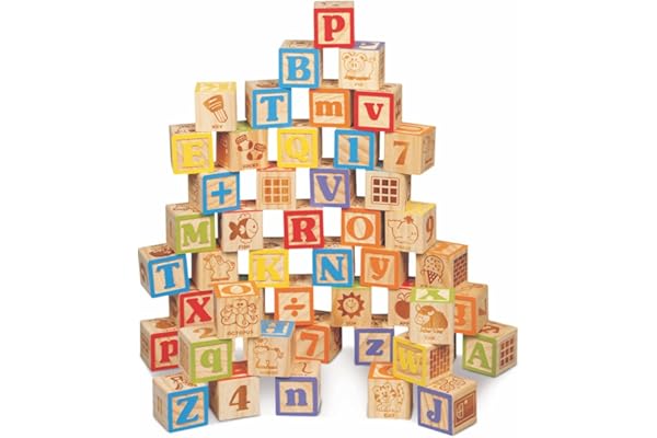 Amazon Com Maxim Deluxe Wooden Abc Blocks Extra Large Engraved Baby Alphabet Letters Counting Building Block Set Toys Games